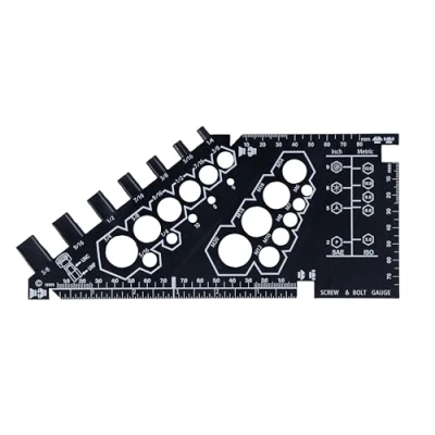 Nut bolt screw gauge multifunction tool which helps the user to check sizes & threads including metric & imperial, removing the guesswork in selecting the correct size fixings. Measurements include: internal diameter of UNC & UNF nuts; diameter of metric & imperial bolts; length of rounded, pan, countersunk, set screws, together with hex head bolts; reference chart for hex cap screws. Manufactured from tough wear resistant ABS plastic. Suitable for mechanics, classic car restorers, plumbers, DIY etc.