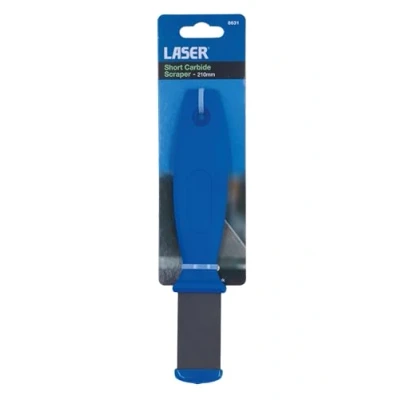 Extra-sharp blade for precise work, ideal for removing gaskets, carbon, rust & paint. Serrated blade for use on grooves, corners or edges on various surfaces. Blade width: 32 mm; length: 60 mm; total length: 210 mm. Ergonomic handle & short shaft ideal for use in tight areas. An extra-long carbide scraper is also available, please see Laser Part No. 8393