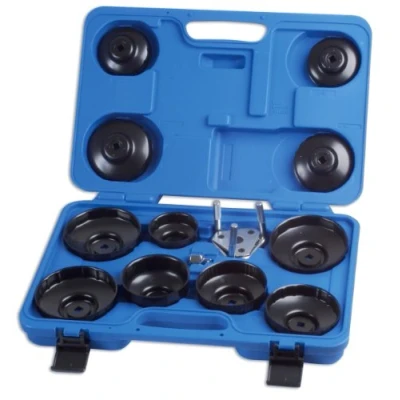 A comprehensive oil filter wrench set with 11 adaptors for specific vehicles. Withstands 85ftlbs of torque. Includes 3 legged oil filter wrench and adaptor for 1/2" (F) to 3/8" (M). Removes oil filters without damaging the filter housing. Supplied in a blow mould case.