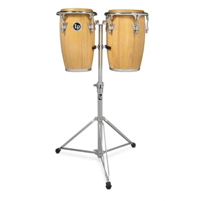 15" Siam Oak shell Natural rawhide head Comfort Curve II Rims LP Heart side plates with 5/16" diameter tuning lugs Includes height-adjustable double-braced stand