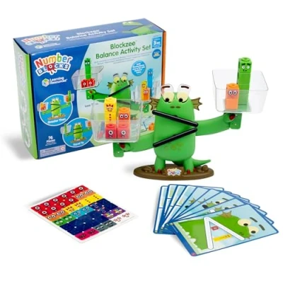 NUMBERBLOCKS MATH GAMES: Blockzee is the nice monster from the CBeebies series that helps children learn equations. Here it comes to life as an innovative interactive balance math toy with movable mouth, arms and eyes. SCALE TOY FOR CHILDREN: Blockzee's mouth moves to form the symbols "bigger than", "smaller than" and "equal". When using this interactive scale, children learn the mathematical equivalence through practical play. MATH TOYS: Kids use the MathLink dice in the official number blocks colors to form the number blocks one to ten, place them in the buckets of Blockzee and watch the mouth move to form the symbols. NUMBERBLOCKS LIKE ON TELEVISION: Children who like games with numbers will have a lot of fun playing and learning with this interactive scale that brings math learning from the TV series to life. Suitable for classroom or home use. INCLUDED: 61 Numberblocks MathLink cube, scale, 10 double-sided activity cards with 20 teacher-developed activities, sticker sheet and whiteboard marker. The game guide and packaging are multilingual., Manufacturer: Learning Resources