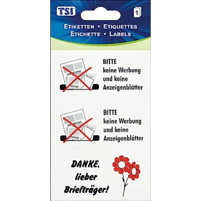 1 sheet of 3 labels (2 No Junk Mail and 1 Thank You Prefer Postman) Print on foil For covering mailboxes Dimensions: 7.5 x 3.5 cm