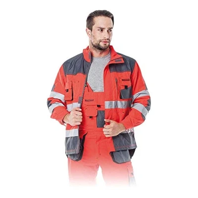 DURABLE MATERIALS The work jacket has been sewn from durable blend of 100% polyester 270 g/m2. Additional reinforcement is attached to the shoulders, elbows and hem to protect against wear and tear With reflective strips: around the jacket and on the sleeves, reflective strips have been made according to EN471 fitted. This guarantees improved visibility in the dark, in warehouse and production halls Ideal for craft and industry: the robust fabrics, ventilation in the armpits and back as well as an optimal fit ensure that the protective jacket is suitable for industry, production staff, installers and fitters Optimal fit: the zip with additional Velcro fasteners, high collar and ensure optimal comfort. The extended back is particularly comfortable and also protects against the cold Multifunctional: 3 generous pockets on the chest, one with Velcro fastener, one with zip and a mobile phone pocket, 2 tight pockets for accessories, e.g. Ballpoint pen, 2 side pockets