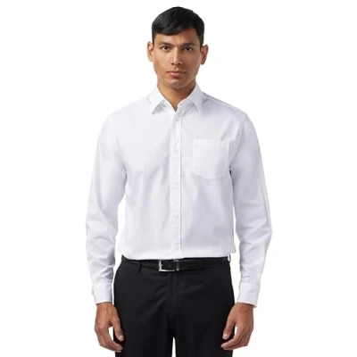 Lee Uniforms Men's Long Sleeve Dress Shirt Button, White, M