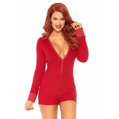 Leg Avenue Romper with Closure Back Flap, Red, XL