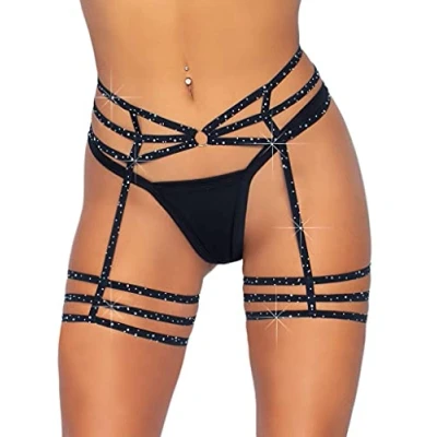 Leg Avenue 81634-00122 Multi Strap Rhinestone Garter Belt With O-Ring Detail, O/S, Black Garter: 80% Nylon 20% Spandex . O/S Black