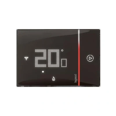 With the Smart Thermostat Smarther With Netatmo you can control and program your heating locally, but also remotely from a smartphone via an app. Features: - Control and program your heating via the touch interface, via your smartphone or via voice assistant - Boost mode: heat your home even faster - Auto-adapt function integrates the weather and thermal properties of the house to ensure the desired temperature - Planning function: allows you to adjust the temperature to your needs and saves money. - Programming Away and Anti-Frost modes for extended startup – Ability to view consumption history and check custom energy saving balance to track and optimize energy consumption Connect thermostat: it can be controlled via the touch interface as well as remotely from your smartphone with the Legrand Home+Control app or via a voice assistant. Compatibility – The Legrand Smarther with Netatmo Smart Thermostat is suitable for all types of single boilers (wood, heating oil, gas) and heat pumps, compatible with over 1500 boilers. This model is designed for flush-mounting in 2-module box.