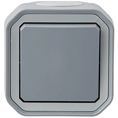 Switch or toggle switch 10 A with tool-free quick connection and colour coding Waterproof and robust IP55 IK08, suitable for all places and environments 2 types of wiring possible: - Platinum free wiring and assembly of the mechanism with a simple clip - Wiring possible with the mechanism already clipped onto the board Grey finish essential for any construction site