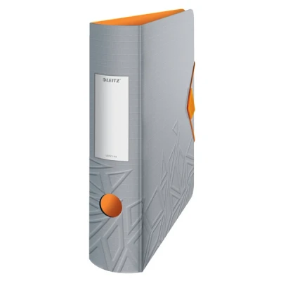 Multi-use lever arch file in debossed dual colour design, 82 mm wide spine, A4, holds 500 sheets (80 gsm paper), ideal for home, school or office use 50 percent wider opening and 20 percent quicker double sided filing thanks to patented 180° lever arch mechanism, mechanism guaranteed for 5 years Easy labelling with EasyPrint custom label template available on the Leitz homepage Brighten up your desk with Leitz Urban Chic products, lightweight polyfoam with stylish, debossed pattern, Curved spine for easy carrying, Inner pockets and pen holder for versatile use, attractive elastic band fastener for secure transportation of documents Contents: 1 x Leitz Urban Chic Lever Arch File, Grey, 11160088, Dimensions: (W x H x D): 82 x 318 x 312 mm, A4, for 2-Hole Items