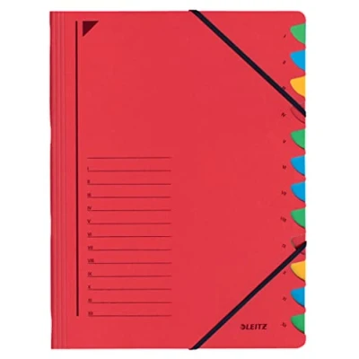 Leitz 39120025 Index File 12 Sections Coloured Chipboard Red