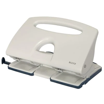 Leitz 4 Hole Punch, 40 Sheets, Guide Bar with Format Markings, Metal, 51320085 Grey