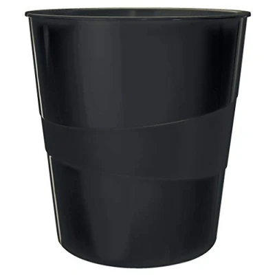 AmazonBlack waste bin with a glossy finish, holds up to 15 Litre, use with or without bin liners for home or office use Rigid rim for securely attaching waste bags, sturdy handle for moving and emptying the bin, stackable when not in use for maximum space efficiency Brighten up your desk with this and other products from the Leitz WOW range Made from strong and durable high-quality plastic material, smooth, easy to clean surface Contents: 1 x Leitz Waste Bin, 15 Litre, dimensions (W x H x D) 29 x 32.4 x 29 cm, materials: Plastic, colour: Black, WOW range, 52781095
