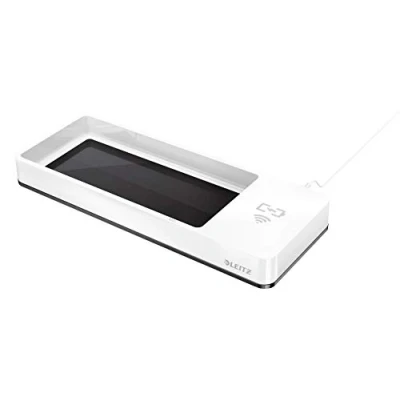Leitz 53651095 Desk Organiser with Qi Wireless Induction Phone Charger, Wow Range, White/Black