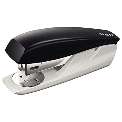 Stapler for up to 25 sheets (80 gsm paper) for home, school and occasional office use, uses two different types of staples 24/6 or 26/6 Staples: 24/6 staples and 26/6 staples (6 mm leg length) fasten up to 25 sheets of 80 gsm paper, also works with Leitz white staples which are invisible when photocopied Space-saving: Fits on every desk and most drawers thanks to its compact size, anti-slip feet won’t mark furniture, integrated staple remover Mix and match with other products from the Leitz NeXXt range, 3 years guarantee, no staple jams plus accurate stapling due to Patented technology of the stapler, top opening for easy refilling, rotating anvil for open or closed stapling, 180 degrees opening enables nailing function, GS Safety tested Content: One Leitz stapler NeXXt range, Noir, 55010095, dimensions (W x H x D): 33 x 49 x 120 mm, weight: 99 g, includes: 200 x 24/6 staples To use with Leitz Power Performance staples always sharp edges due to ongoing quality checks for perfect stapling