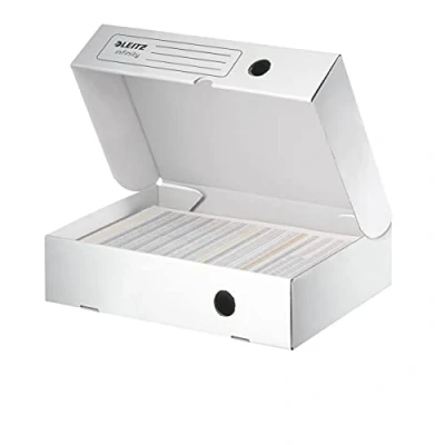 Leitz Archive Box with Wide Opening, long-term archiving solution for preserving and protecting A4 sized documents and folders, holds up to 600 sheets (80 gsm), ideal for museums, archives, libraries and offices Sturdy and thick acid-free corrugated board for protection and preservation of documents, 100 percent recyclable, FSC certified, tested and certified by the Paper Technology specialists in Germany, fulfils international ISO 16245 standard Lightweight and easy to handle, fits suitably on most shelves, for horizontal use, side label for quick identification of contents Easy to assemble in seconds, double closing flaps for additional support and protection of contents