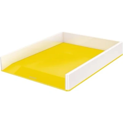 Dual colour Letter tray in white and yellow with a glossy finish, Contemporary design, For the organisation of A4 and US size documents at your office or home, Easy to handle ergonomic shape Brighten up your desk with this and other products from the Leitz WOW range Can be stacked vertically to allow simple organisation of documents, magazines and folders, Interior dimensions: 32.5 x 24.5 x 4 cm Sturdy plastic material does not bend when full, Easy document access via large front opening and sloped edge for easy filling Contents: 1x Leitz A4 Letter tray, Dimensions (WxHxD: 26.7 x 4.9 x 33.6 cm, Colour: White/Yellow, WOW Range, 53611016