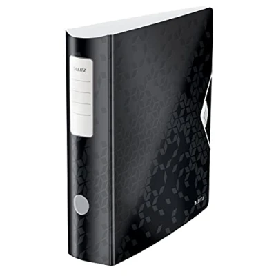 Multi-use lever arch file in bright black, 75mm wide spine, Holds 500 sheets (80 gsm paper, Ideal for home, school or office use Easy labelling with EasyPrint custom label template available on the Leitz homepage, Self adhesive spine label included WxH: 35x145mm 50% wider opening and 20% quicker double sided filing thanks to patented 180° lever arch mechanism, Mechanism guaranteed for 5 years, Rado slots to keep binder closed and upright on shelf Brighten up your desk with this and other products from the Leitz WOW range, Lightweight polyfoam (2.8 mm, Curved spine for easy carrying, 3 inner pockets for loose documents, business cards and pens, Kind to furniture thanks to non-scratching surface Contents: 1x Leitz Lever Arch File WOW, Black, 11060095, dimensions: (WxHxD: 82x318x312mm, for 2-Hole Items
