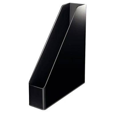 Dual colour magazine file in black and grey with a glossy finish and contemporary design, for the organisation of A4 and US size documents, magazines and folders with an easy to handle ergonomic shape High front to keep documents secure with top opening for quick access to paper documents, magazines and catalogues, with easy retrieval from the shelf, it is ideal for home or office use The magazine file is made from high quality, robust plastic with an extra slim smooth look and easy to clean surface, front labelling made easy with the Leitz Icon label printer for easy identification Brighten up your desk with this and other products from the Leitz WOW Range Contents: 1 x Leitz Magazine File, A4, Dimensions (W x H x D): 27.2 x 7.3 x 31.8 cm, Does not hold lever arch files, Black/Grey, Dual Colour Range, 53620095