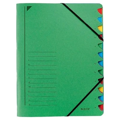 Leitz Esselte 39120055 Index File 12 Sections Coloured Chipboard Green