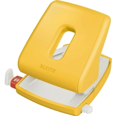 2 hole punch for up to 30 sheets (80 gsm paper) for everyday use in the office, at school and at home, easy to use with less pressure thanks to patented grip zone and ultra sharp hole stamps For paper sizes A4, A5, A6, folio, US-quart and 4 hole punching capability using 888 position on guide bar, hole spacing 8 cm, hole diameter 5.5 mm Practical strong guide bar with clear format markings and viewing window for paper alignment , space-saving: handle lock for easy storage, cutters are covered for safe use, easy to empty hinged confetti tray Mix and match with other products in the Cosy Range from Leitz to combine home style comfort with premium quality products for a productive working environment, 10 years guarantee Contents: 1 x Leitz hole punch, dimensions (W x H x D) : 137 x 109 x 131 mm, Warm Yellow, cosy range, cardboard packaging, 50040019