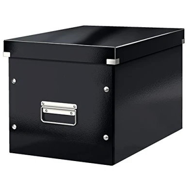 AmazonStriking storage box capable of holding your tall or round-shaped items along with larger items such as toys, shoes, cameras and more, Portable thanks to metal handles, Ideal for the transportation and organisation of documents and assorted accessories at home or in the office, Cube design fits perfectly to standard cubed furniture Simple assembly and disassembly thanks to button mechanism, Folds away for easy storage when not in use Durable material for reusable storage, Label holder on front for easy content indexing Mix and match with other products from the Leitz Click and Store Range, High quality, Reinforced metal corners for keeping contents safe, Laminated surface for easy cleaning Contents: 1 Leitz Click and Store Large Cube, Black, 61080095, WxHxD: 32 x 45 x 36 cm