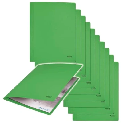AmazonPremium quality practical A4 binder with metal locking mechanism and space for up to 250 A4 sheets, ideal for displaying and storing important documents Made from 100% recycled and durable 275gsm cardstock, the binder is awarded the Blue Angel and 100% recyclable (remove metal for this) Lightweight and durable: the folder is ideal for transporting, storing or displaying documents - whether in the office, at school or on the go ALWAYS SECURE STORAGE: A latch mechanism keeps documents in place for quick storage and effortless access Box contents: 10 x Leitz Recycle cardboard folders, dimensions (W x H x D): 275 x 1 x 318 mm, 44 g, green, 39040055