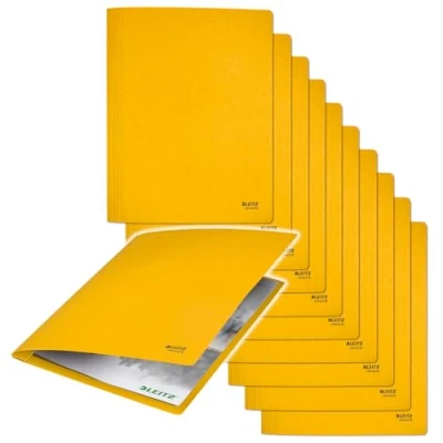 AmazonPremium quality practical A4 binder with metal locking mechanism and space for up to 250 A4 sheets, ideal for displaying and storing important documents Made from 100% recycled and durable 275gsm cardboard: the folder is carbon neutral, awarded the Blue Angel and 100% recyclable (remove metal for this) Lightweight and durable: the folder is ideal for transporting, storing or displaying documents - whether in the office, at school or on the go ALWAYS SECURE STORAGE: A latch mechanism keeps documents in place for quick storage and effortless access Box contents: 1 x Leitz Recycle cardboard folder, dimensions (W x H x D): 275 x 1 x 318 mm, 44 g, yellow, 39040015