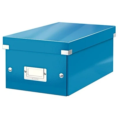 AmazonStorage box with contemporary design, ideal for the storage and organisation of photos and accessories in the home or office Simple assembly and disassembly thanks to clothes popper fastening construction, folds away for easy storage when not in use Durable material for reusable storage, label holder on front for easy content indexing Mix and match with other products from the Leitz click and store range, high quality, reinforced metal corners for keeping contents safe, laminated surface for easy cleaning Contents: 1 x Leitz click and store storage box, blue, 60420036, W x H x D: 20.6 x 14.7 x 35.2 cm