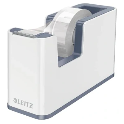 AmazonDual colour tape dispenser in pearl white and grey with a glossy finish, compatible with rolls of tape up to 19 mm wide and 33 mm long, for home and office use Brighten up your desk with this and other products from the Leitz WOW range Quick and easy to change rolls, anti-slip feet for preventing unwanted movement and scratches on furniture Heavy base and sharp cutter designed for one handed use Contents: 1 x Leitz WOW Tape Dispenser including one roll of writable tape, 53641001, (W x H x D) 5.1 x 7.6 x 12.6 cm, Weight: 0.76 kg, colour: Pearl White/Grey