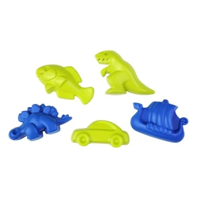 Set of 5 small sand moulds. T-Rex, Stegosaurus, Fish, Car and Viking Ship Suitable for small children's hands Suitable for children from 12 months Packed in net, hangtag with product information Made in Europe. TÜV certified., Manufacturer: SIMM Spielwaren