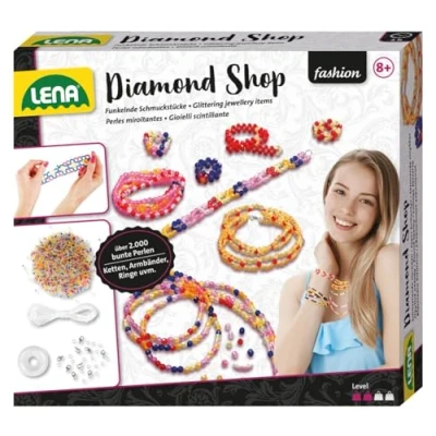 Lena Complete set for sparkling jewellery Contents: 2,000 iridescent plastic beads for rings, bracelets, necklaces and necklaces as well as elastic threads With detailed colour-illustrated instructions for unusual designs Suitable for ages 8+ Encourages concentration, dexterity, patience and creativity, Manufacturer: SIMM Spielwaren