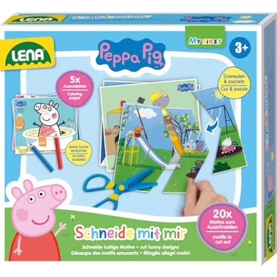 Complete set with high-quality plastic scissors without blade 20 Peppa Pig motifs to cut out for creative fun Includes 5 additional designs to colour in Set of 3 difficulty levels for different ages Suitable for children over 3 years, Manufacturer: SiMM Spielwaren GmbH