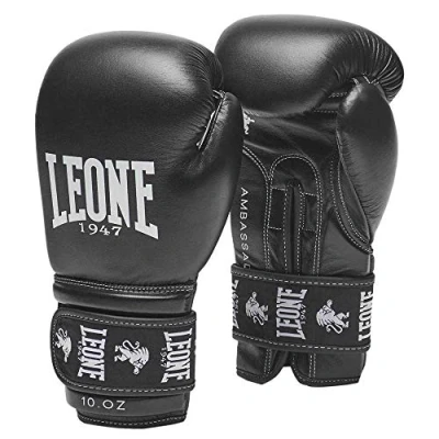 LEONE 1947 Ambassador Unisex Adult Boxing Gloves, Black, 10oz