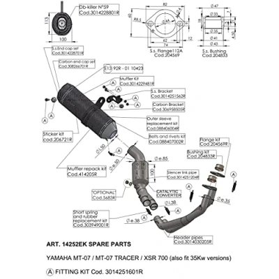 For Yamaha MT07 year of manufacture 2018 High quality genuine LeoVince replacement part Set components/box contents: 3014251601, 405499, 410059, 303949001, 308574001, 204985, 200333, 204321, 200314, 200298, IMBT20X40, 40760 3 US Attention: In addition to the spare parts, the item listing may also consist of packaging and material information. Only the items listed, the exploded drawing is for illustration purposes only Suitable for LeoVince item number: S14251EB, S14251EKB, S14251EK, S14251E, S14252EK, S14252E