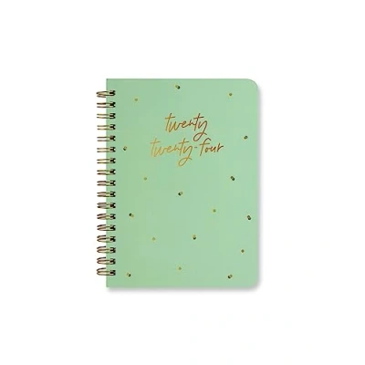 2024 diary, week to view format Wiro bound cover with polka dot print Monthly calendar before each month To Do and Notes pages after each month Pop out accessories and double sided pocket