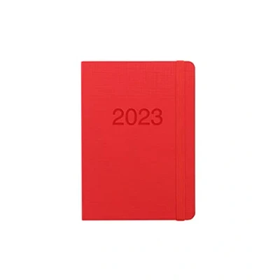 2023 diary, A6 week to view format Contemporary textured cover Colour match embossed date and elastic closure Ribbon page marker Made in the UK
