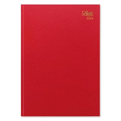 2024 diary A4 size Hard red cover with foil embossed 2024 and Letts logo Week to view format Made in the UK