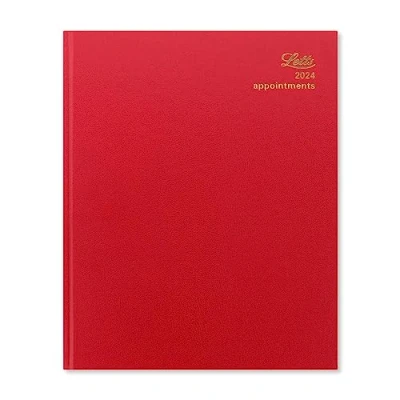 2024 diary, Quarto size Page size 259mm x 210mm Vertical week to view with appointments format Hard red cover with foil embossed 2024 and Letts logo Made in the UK