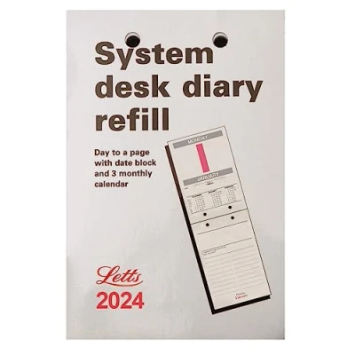2024 desk calendar Day to a page; weekends combined Refill for Letts System Desk Calendar 135mm x 85mm English language