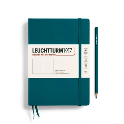 LEUCHTTURM1917 359698 Notebook Medium (A5), Hardcover, 251 Numbered Pages Pacific Green, Plain