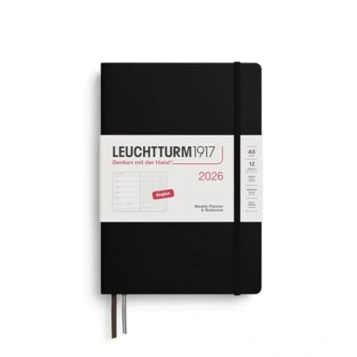 LEUCHTTURM1917 372700 Weekly Calendar & Notebook Dotted Medium (A5) 2026, Black, English