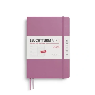 LEUCHTTURM1917 372701 Weekly Calendar & Notebook Dotted Medium (A5) 2026, Dusty Rose, English