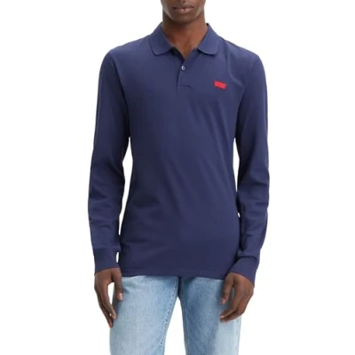 Levi's LONG Sleeve SLIM Housemark Polo shirt, Men's, Size: Medium, Blue denim