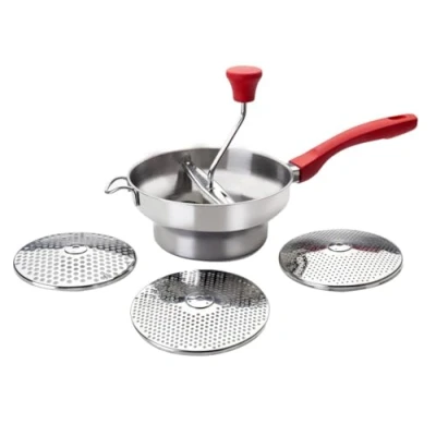 Pures press with 3 discs of 20 cm, perfect for draining and shredding fruits and vegetables with ease in the kitchen, ensures a smooth and homogeneous texture in your recipes. Pures Press with 3 20cm discs, perfect for crushing and draining, making it easy to prepare fruit and vegetable purees in minutes. Pures press with 3 discs of 20 cm, perfect for obtaining soft and creamy purees, ideal in the preparation of soups and side dishes in the kitchen. Pures Press with 3 x 8 inch discs, perfect for shredding fruits with ease and draining vegetables, making your preparations faster and more efficient in the kitchen. Pures press with 3 discs of 20 cm, perfect for draining fruits and vegetables, facilitating the preparation of your recipes with comfort. Cook with ease!