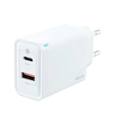 Fast and efficient charging with the [GAN 45W Wall Charger]. [Compact] design (ideal for travel) and compatible with USB-C/USB-A. [Wall Charger] GAN 45W [USB-C/USB-A], [Compact] and [Fast]. Ideal for [charging devices] (up to 3x faster) and [laptops]. GAN 45W Wall Charger [USB-C/USB-A], [Compact and Fast]. [Easy Installation] - Just plug and charge. (Ideal for electronic devices). [GAN 45W USB-C/USB-A Wall Charger] [Compact] and [Fast], ideal for devices. [Safety Guaranteed] (High Quality Certification) 5. Recommended applications or uses: Ideal for environments such as [home] and [office] (fast charging of laptops and smartphones). Its [compact] design makes it easy to carry.