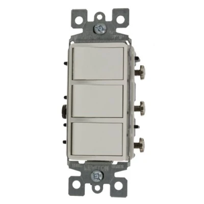 Leviton 1755 2W 15 Amp, 120 Volt, Individual Switches, Decora Three Rocker Combination Switch, Commercial Grade, with Ground Screw, White