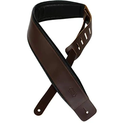 Levy's DM1PD‐DBR 2.5 inch Leather Guitar Straps ‐ Dark Brown