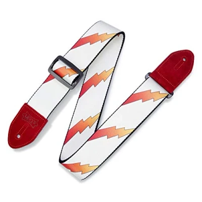 Prints Series Levy's 2" Wide Printed polyester guitar strap Adjustable to 60" One-ply printed polyester guitar strap with suede leather ends and vintage logo. Black plastic loop and slide hardware Designed by Levy's industry leading fashion designers