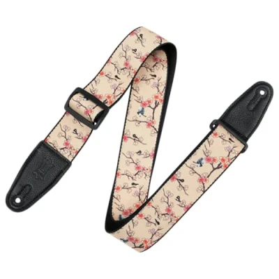 Levy's Leathers Guitar Strap MPD2 115 Prints Polyester With Leather Ends 2" Cherry Trees Birds