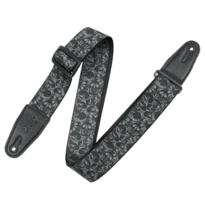 2-Inch Wide Polyester Guitar Strap with Black & Grey Skulls Motif 65” Max Length with Tri-Glide Sliding Adjustment Dye-Sublimation Printed Black & Grey Skulls Pattern Motif Incredibly Strong, Lightweight One-Ply Polyester Construction Pin Hole Stitching on Leather Ends Prevents Stretching